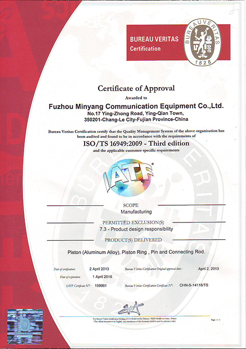 Mingyang communication equipment CO.,LTD is a big enterprise founded by several businessmen from Taiwan, majoring in the production and sales of piston rings、pistons、pins、 connecting rods and cylinder liner for the engines of motorcycles 、 automobiles、 construction equipment、 farm machinery、 outboard and other engines. Since in 1993, has built by “Human Nature、 Innovation and Progress” as management idea and by “The Best in Quality ,The Best in Reputation and The First in Customer” as The Purpose of Quality MY are the supplier of more OEM such as Federal-Mogul、Mahle、DONGJI STAQR Mechanical Co. LTD., Zhejiang Wangye Power 、Zhejiang JONWAY Group ,Jiangsu SINSKI Motorcycles 、 Shanghai Dazong Motorcycles ,These are motorcycles and automobiles assembling factories, and from 2014 year our factory successfully become the important supplier of the OEM enterprise in the German . All MY products are deeply welcomed by our customers. Under the company policies of “Human Fist ,Quality Fist, Scientific Management “,MY has been growing fast MY management scale covering the land area about 6000 square meters and employees about 1200 peoples included almost 100 peoples of engineers 、 technicians and executive staffs .
